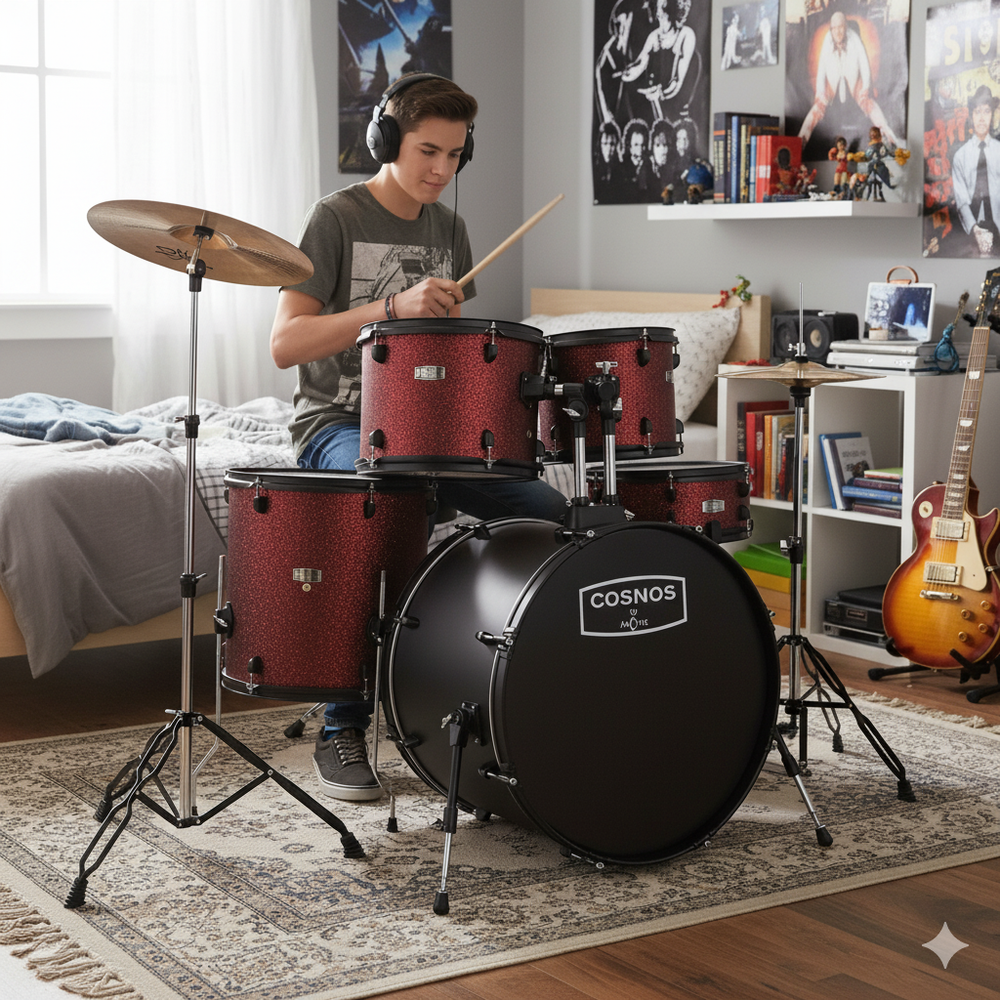 Arctic Cosmos 5-Piece Complete Acoustic Drum Kit (Red) - Full Set with Hardware & Throne