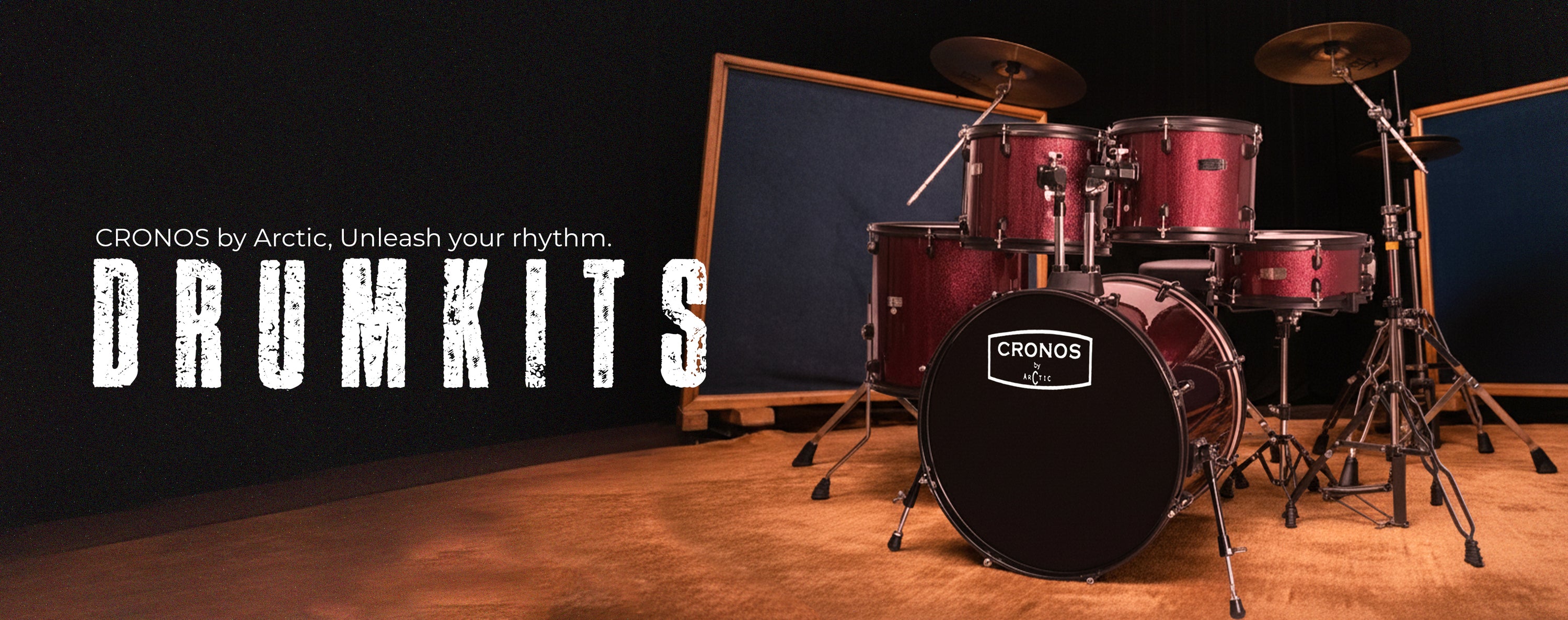 Arctic Cronos 5-Piece Acoustic Drum Kit (Black) with Cymbals, Sticks & Hardware