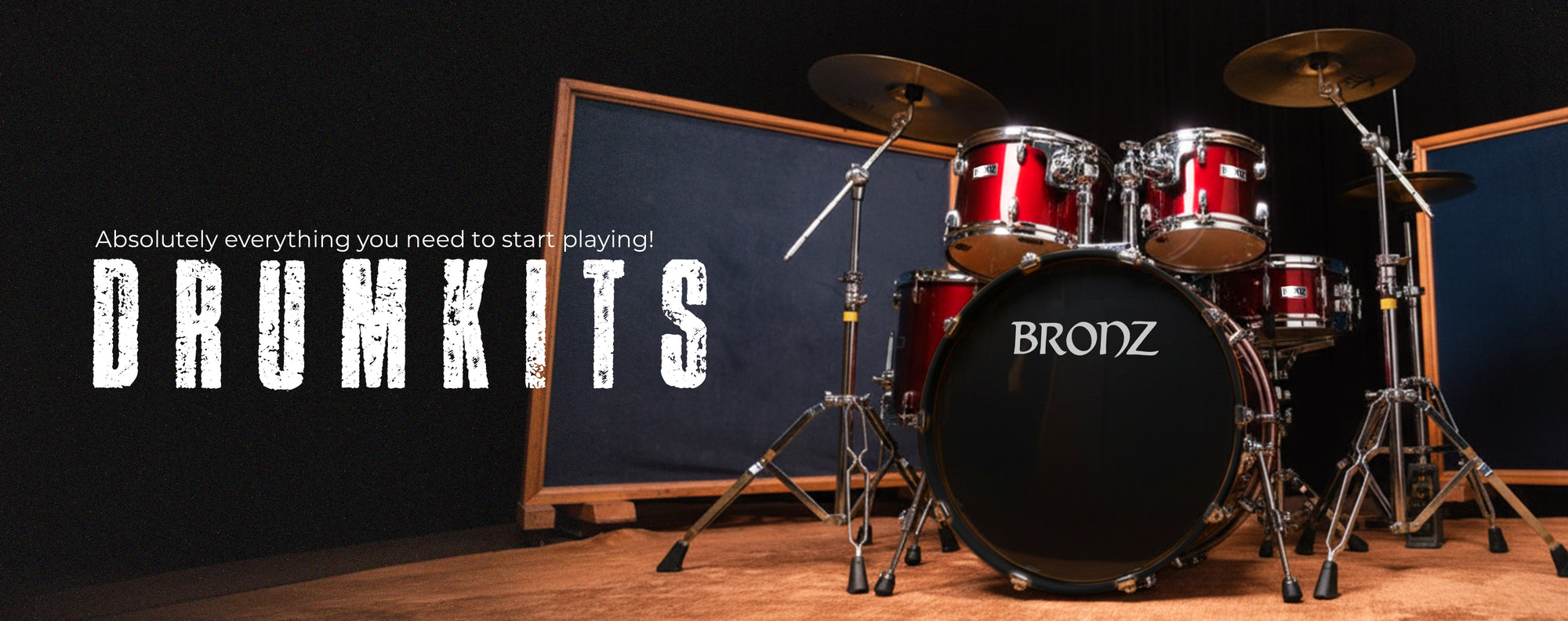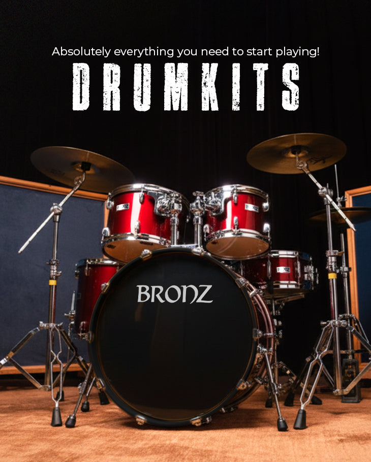 BRONZ Acoustic Drum Kit (Black) - 5 Pc Complete Drum Set with Hardware & Throne