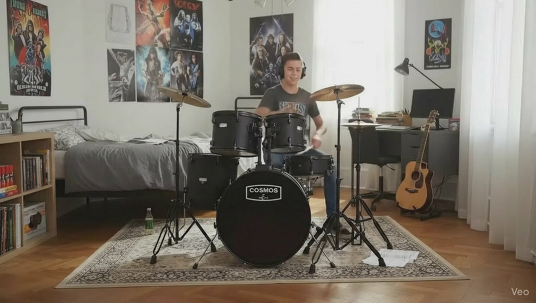 Arctic Cosmos 5-Piece Complete Acoustic Drum Kit (Black) - Full Set with Hardware & Throne