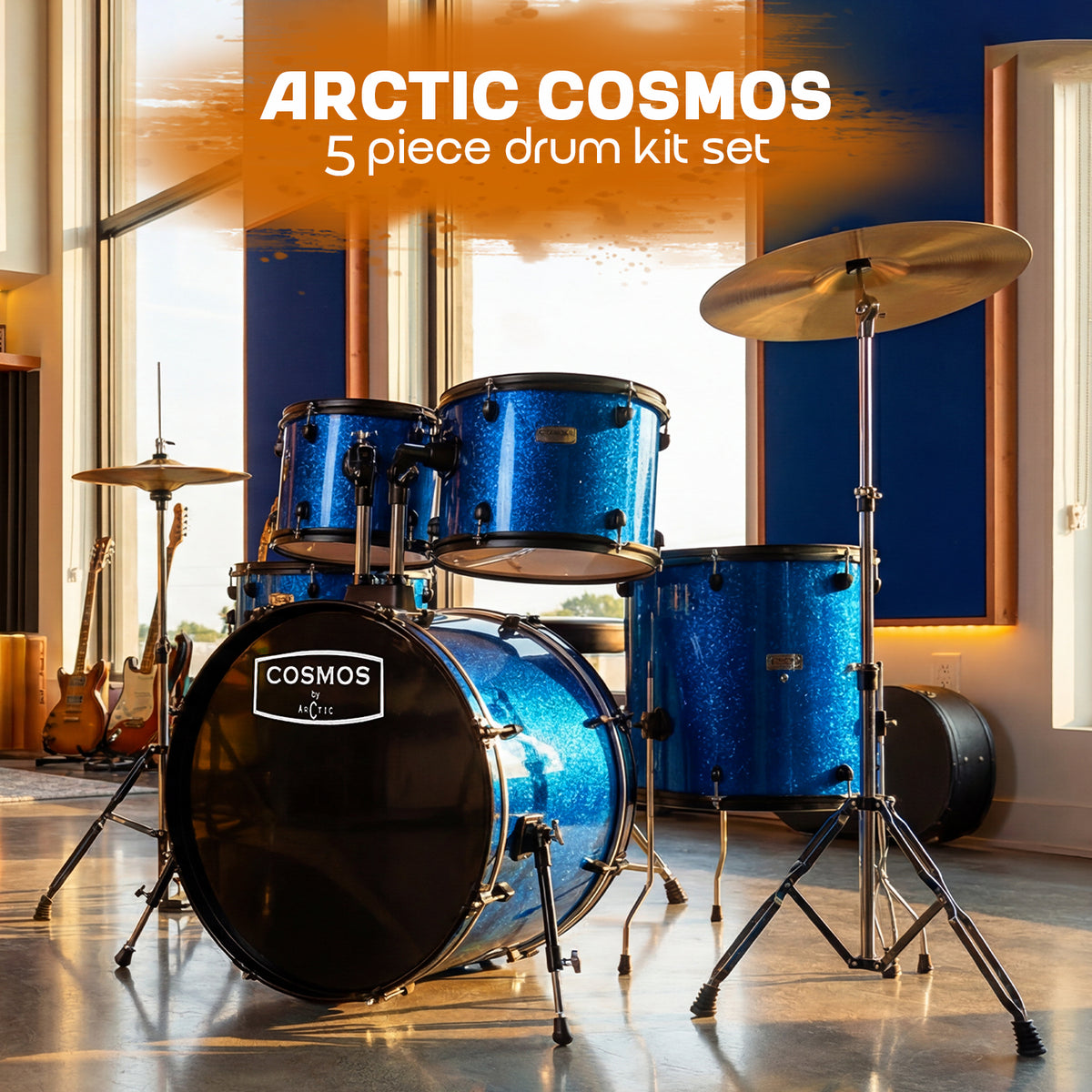 5-Piece Drum Kit Full Size Shell Pack with 22" Bass Drum, 14" Snare & Cymbals - Intermediate/Beginner Set