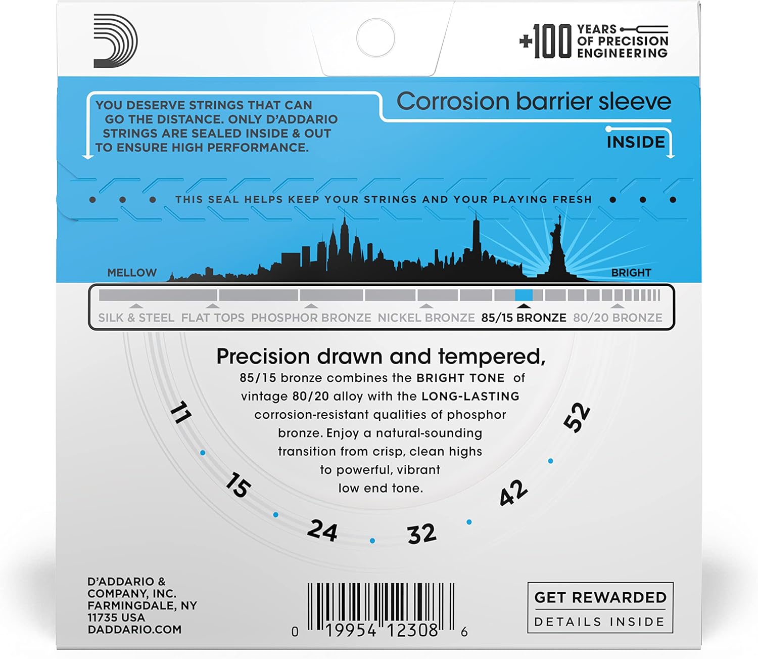 - MADE IN THE USA – Our 85/15 Bronze strings are made in the USA—drawn to exacting specifications at our New York production facility.