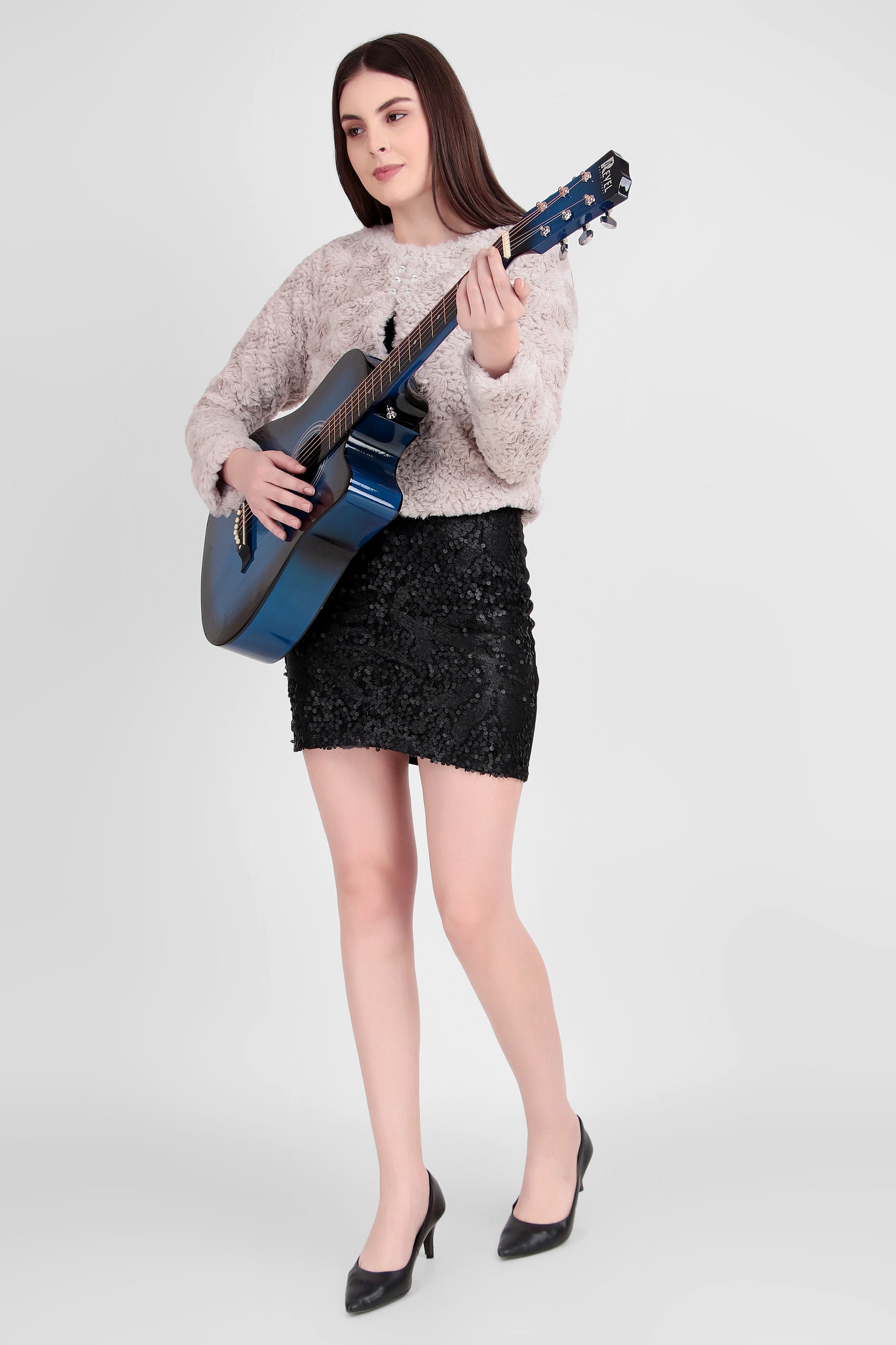- Sleek Design: Modern Blue finish with a Cutaway Style, providing easier access to higher frets.